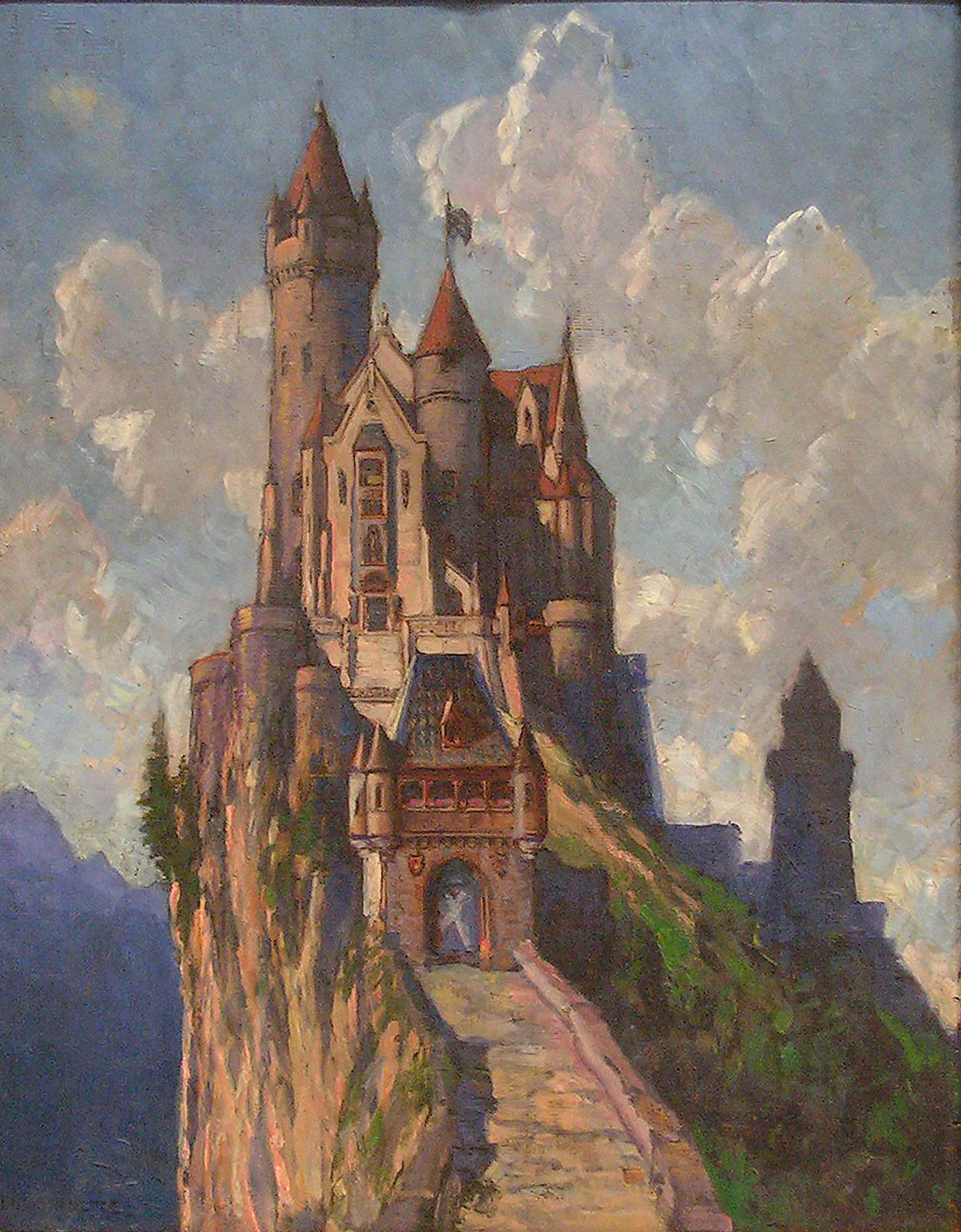 Ostansicht von Burgschloss Falkenstein Max Schultze Vor 1925 Öl auf Holz, 47,5 x 37,5 cm Bayerische Verwaltung der staatlichen Schlösser, Gärten und Seen, L. II.-Mus. 515
